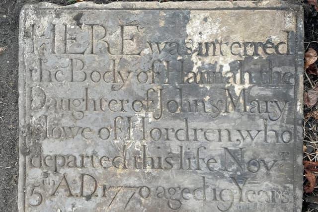 The headstone was found at St John the Baptist Church in Penistone, buried underneath another stone and completely obscured from view.